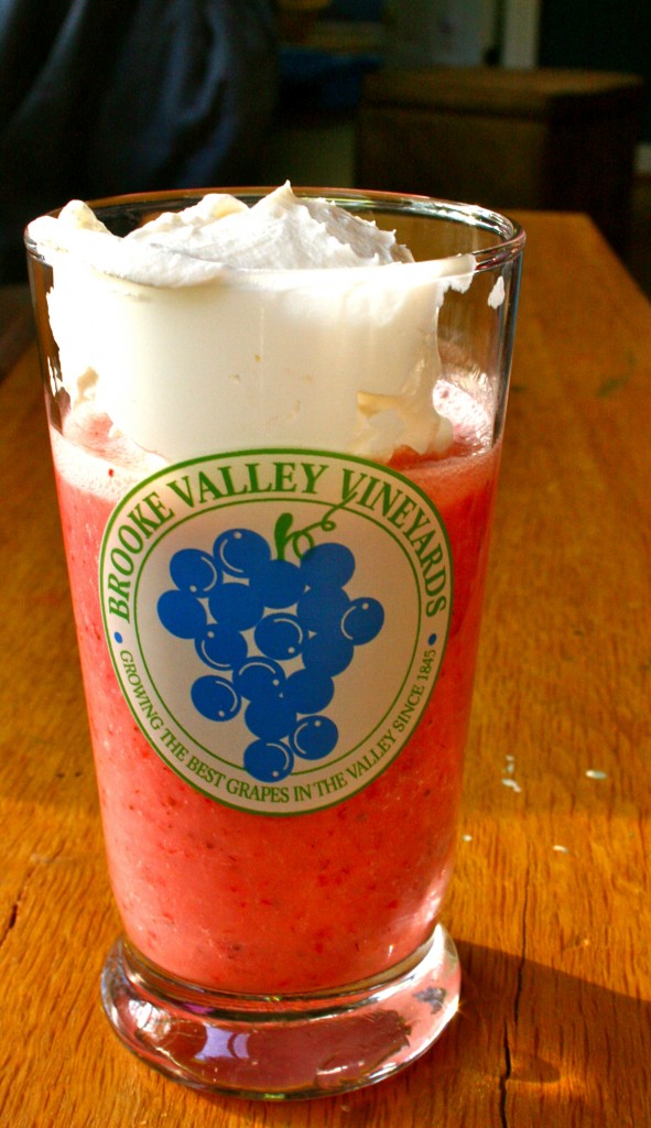 A fresh strawberry smoothie.  As in – these strawberries were picked only hours before they were blended harmoniously together in my lame Black & Decker blender.