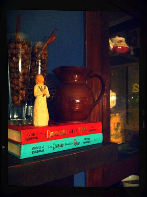 Right now, my favorite little pile of books is in the dining room atop one of my favorite pieces of furniture.