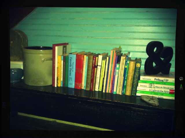 I turned a favorite little black bench from my room as a kid into a poetry-only collection of books in our now-spacious foyer. (I love the word “foyer”. It’s just a charming word, isn’t it?)