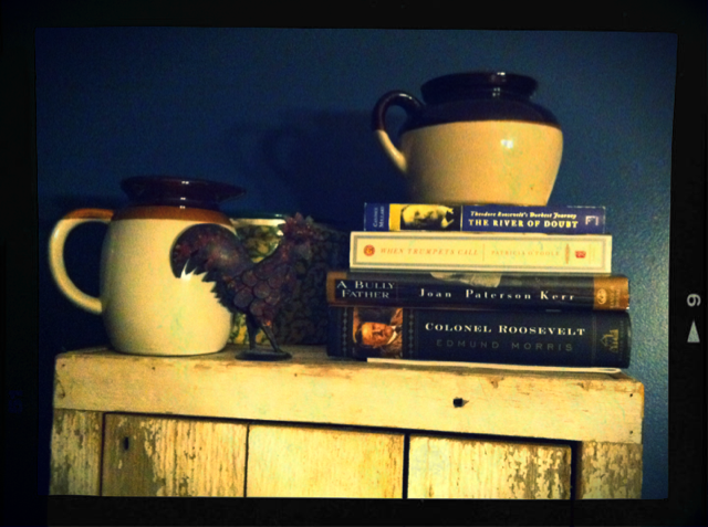 The furniture was made from the original siding from my family’s Civil War-era farmhouse and the books are all Teddy Roosevelt – Kevin’s favorite man of history.