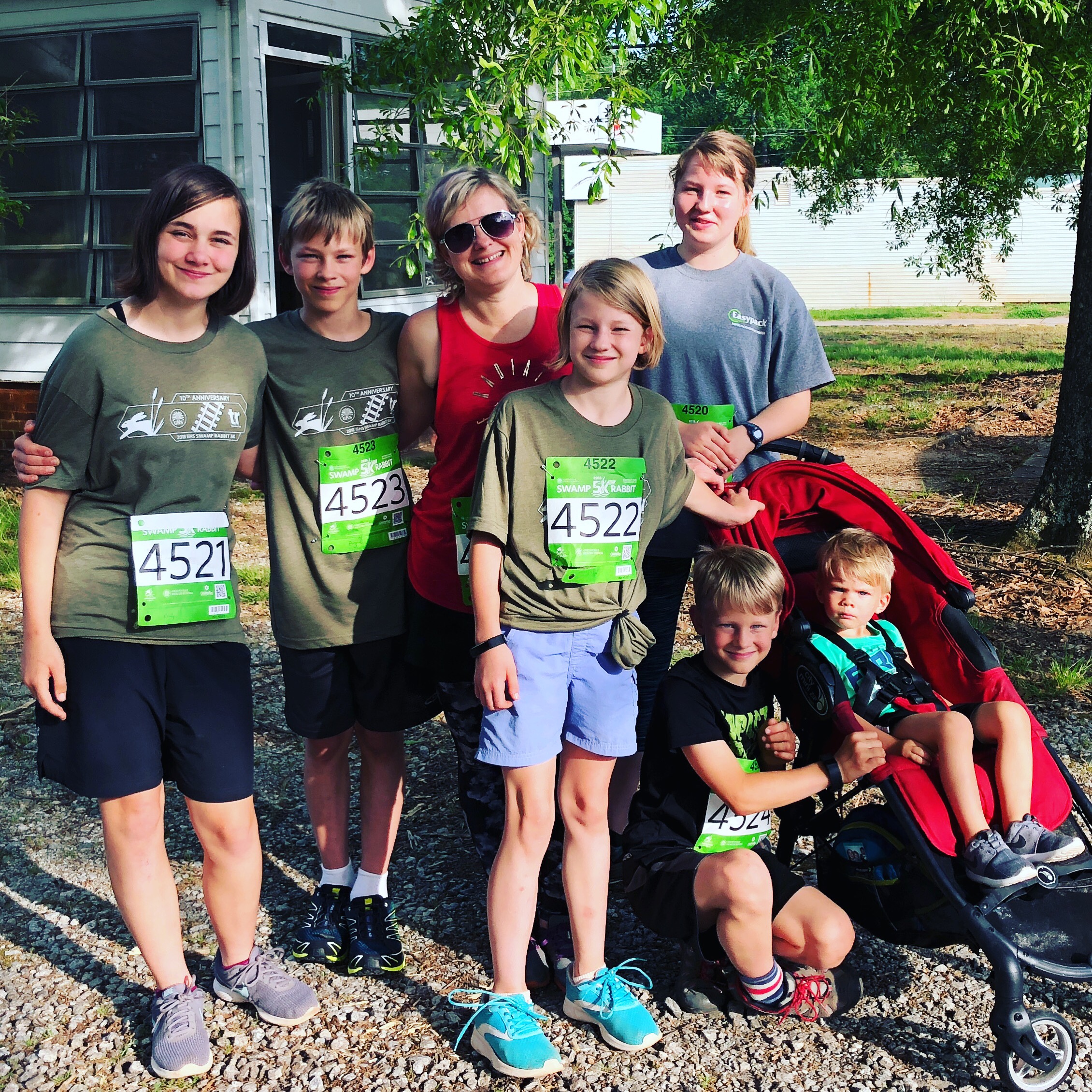 This weekend Maddox spent the night. We ran our traditional Swamp Rabbit 5K, a little local race we’ve been running for years with our friends. (Otto and Piper used to be the ones in the stroller and this time London pushed Maddox in the stroller.) We also taught Maddox the fine art of cardboard hill sledding and he taught us how exciting seeing cows in a field can be.