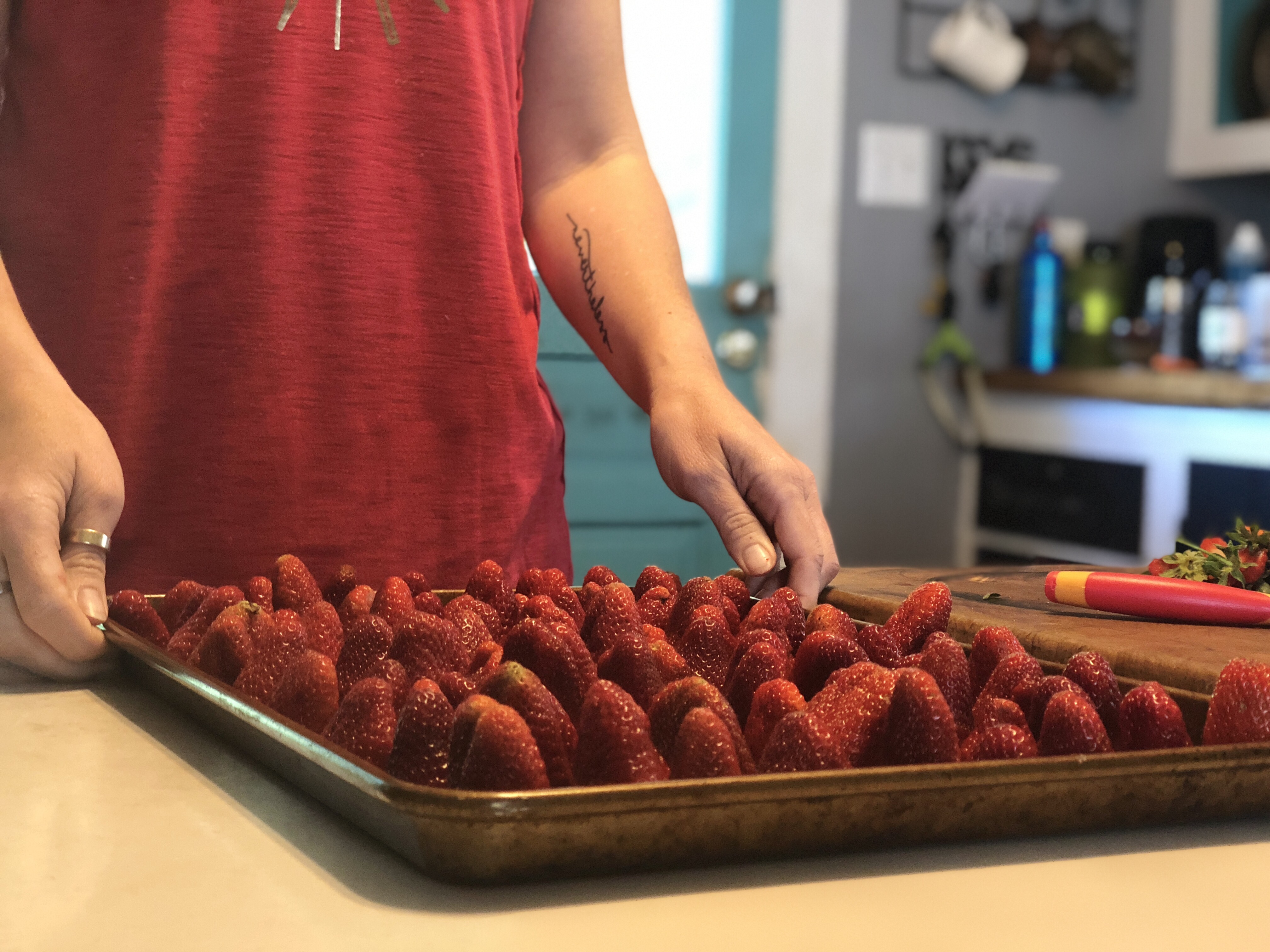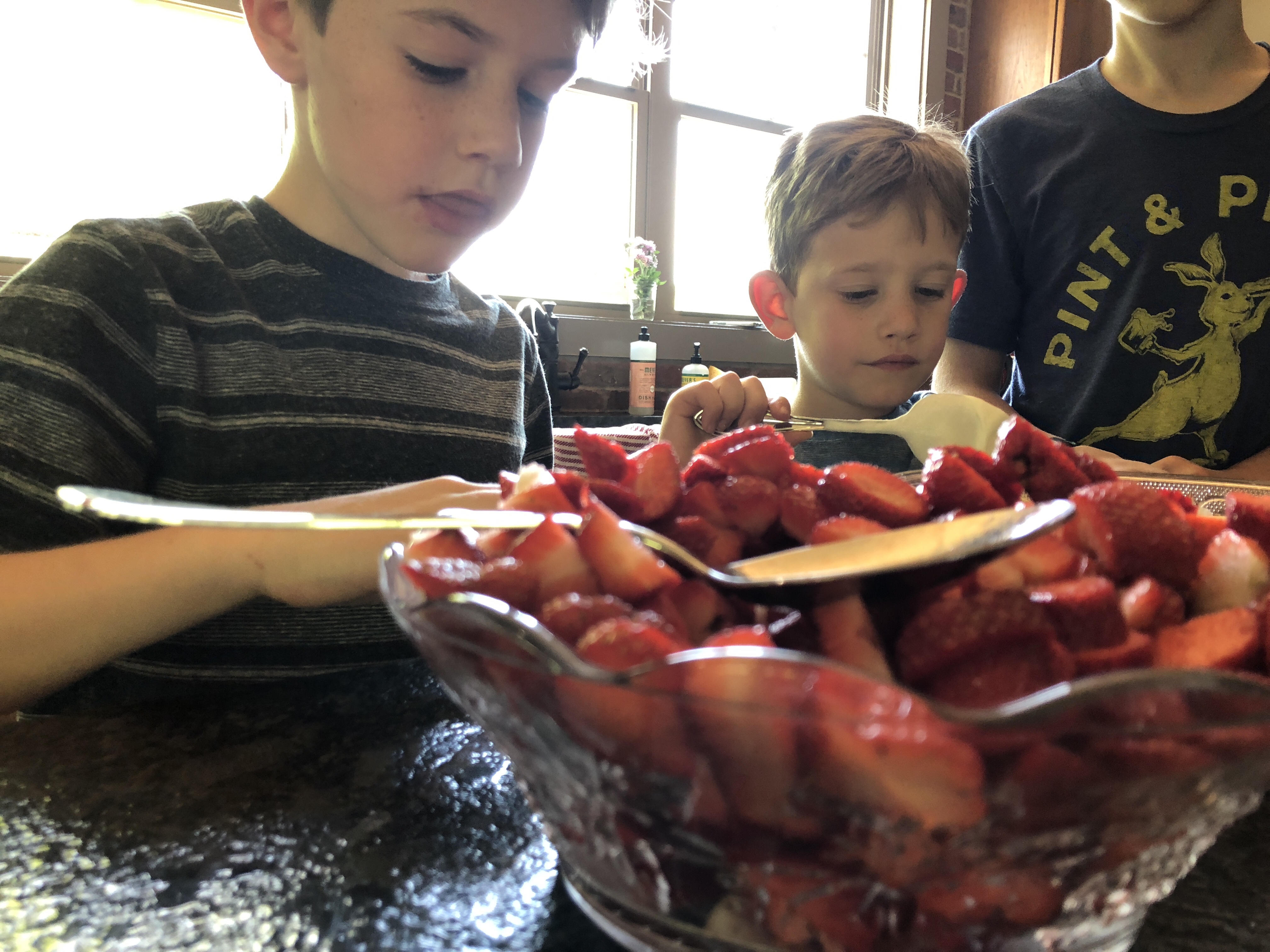 This week we picked strawberries. I love picking our food from the ground or the tree or the whatever. (I mean, it’s fine to pick it from the grocery store shelf too and I do that mostly, but it’s just so satisfying and connected feeling to pick food from its source. Except chickens – and beef. Well, all meat really. I don’t want to pick that from its source. But I want someone else to.)